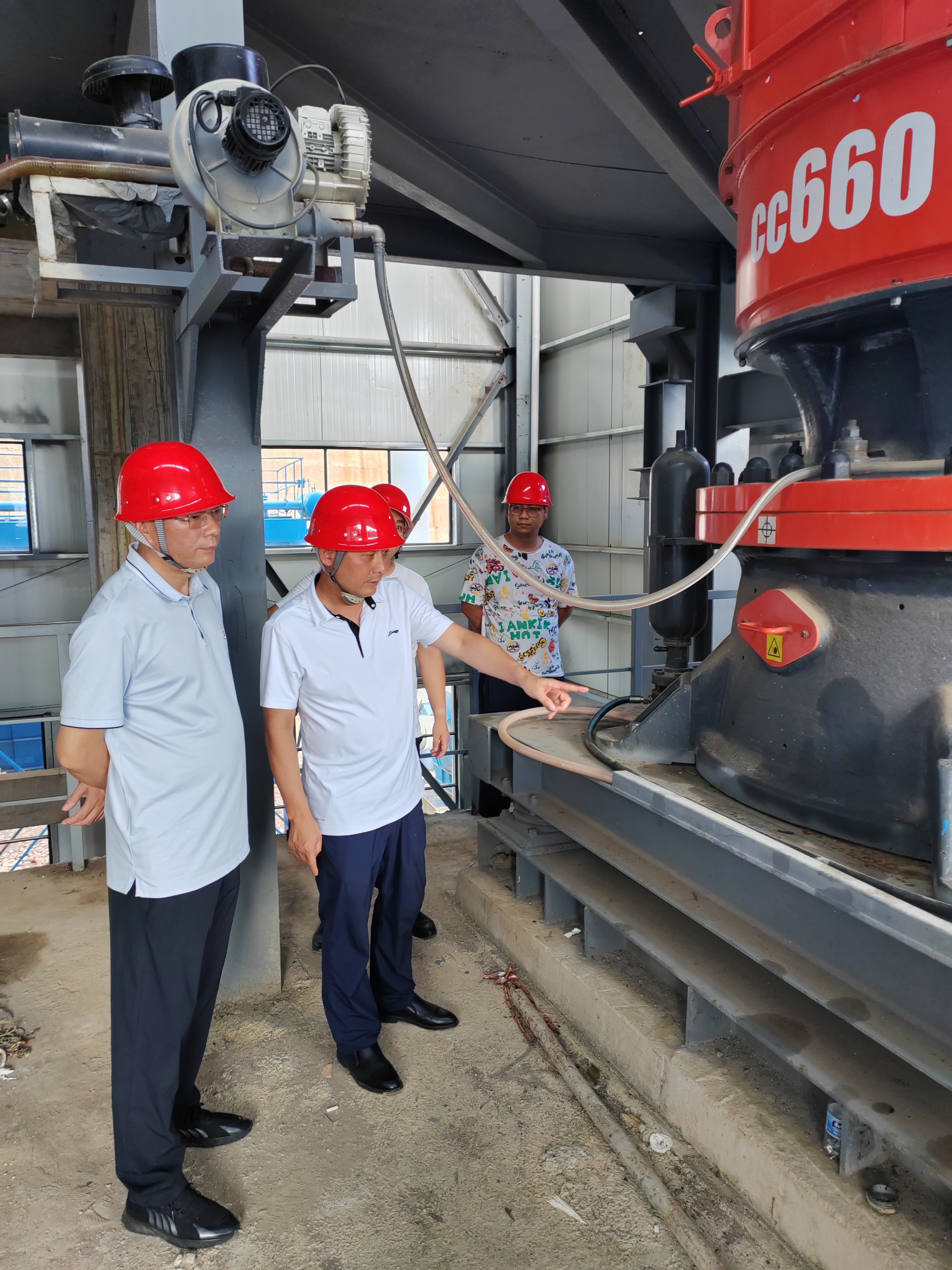 在現(xiàn)場踏勘時,茍儒沿著各項生產(chǎn)工序逐一查看了重要機(jī)組設(shè)備的裝機(jī)調(diào)試情況,著重了解了項目整體建設(shè)情況和試運行前各項工作準(zhǔn)備情況。