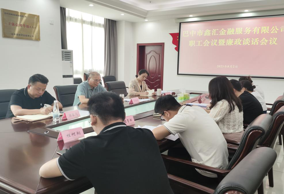 8月2日上午,巴中市鑫匯金融服務(wù)有限公司召開職工會議暨廉政談話會議,集團(tuán)公司黨委委員、副總經(jīng)理劉仕勇主持會議并講話,公司全體職工參加。